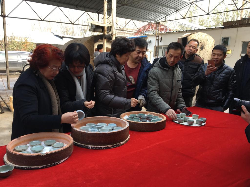 與會嘉賓集體參觀了柴燒官瓷的開窯過程。在燒制現場,圍繞著剛剛出窯的瓷器,專家們就北宋官瓷的器形、胎釉、燒制技術等方面進行了深入的探討和交流。