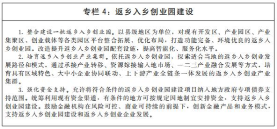 四、強化創業帶動作用,放大就業倍增效應 深入實施創新驅動發展戰略,營造有利于創新創業創造的良好發展環境,持續推進雙創,更大激發市場活力和社會創造力,促進創業帶動就業。 (七)不斷優化創業環境。 深化創業領域“放管服”改革。全面實行《優化營商環境條例》和政府權責清單制度,分類推進行政審批制度改革,打造市場化法治化國際化營商環境。實施全國統一的市場準入負面清單制度,健全清單動態調整機制,定期評估、排查、清理各類顯性和隱性壁壘,最大限度解除對創業的束縛。提升企業開辦標準化規范化便利化水平,建立便利、高效、有序的市場主體退出制度。實行以公平為原則的產權保護制度。 加強創業政策支持。加大對初創實體的支持力度,進一步降低創業成本,提升初創企業持續發展能力。落實創業擔保貸款及貼息政策,提高貸款便利度和政策獲得感。拓展創業企業直接融資渠道,健全投資生態鏈,更好發揮創業投資引導基金和私募股權基金作用,加大初創期、種子期投入。提升創業板服務成長型創業企業功能,支持符合條件的企業發行企業債券。 實現創業資源開放共享。強化大企業在市場拓展、產業鏈協調、帶動中小企業創業方面的作用,實施大中小企業融通創新專項行動,鼓勵大企業向中小企業開放資源、場景、應用、需求,打造基于產業鏈供應鏈的創新創業生態。推動國家科研平臺、科技報告、科研數據、科研儀器設施、高校實驗室進一步向企業、社會組織和個人開放,創造更多創業機會。促進國家級新區、國家自主創新示范區開放企業(項目)資源,建立項目對接機制,吸納人才創業。 (八)鼓勵引導各類群體投身創業。 激發勞動者創業的積極性主動性。實施農村創業創新帶頭人培育行動,壯大新一代鄉村企業家隊伍。實施大學生創業支持計劃、留學人員回國創業啟動支持計劃。鼓勵引導有創業意愿和創業能力的農民工、大學生、退役軍人等人員返鄉入鄉創業。建立科研人員入鄉兼職兼薪和離崗創業制度,完善科研人員職務發明成果權益分享機制。激發和保護企業家精神,倡導敬業、精益、專注、寬容失敗的創新創業文化。 全方位培養引進用好創業人才。大力發展高校創新創業教育,培育一批創業拔尖人才。面向有創業意愿和培訓需求的城鄉各類勞動者開展創業培訓。實施更加積極更加開放更加有效的人才政策,加大創業人才引進力度,為外籍高層次人才來華創業提供便利。健全以創新能力、質量、實效、貢獻為導向的創新創業人才評價體系,加強創新創業激勵和保障。 (九)全面升級創業服務。 打造全生態、專業化、多層次的創業服務體系。加快完善創業服務網絡。加強服務隊伍建設,為創業者提供政策咨詢、項目推介、開業指導等服務。推廣創業導師制,推行科技特派員制度,支持科技領軍企業、高技能人才、專業技術人才等到基層開展創業服務。實施創業帶動就業示范行動,組織各類創業大賽和創業推進活動,辦好全國雙創活動周,開展創業型城市示范創建,營造濃厚的創業氛圍。 建設特色化、功能化、高質量的創業平臺載體。構建眾創空間、孵化器、加速器、產業園相互接續的創業平臺支持鏈條。創新創業孵化載體建設模式,支持大企業與地方政府、高校共建,提高利用率。實施全國創業孵化示范基地改造提升工程,強化服務質量管理,提升孵化服務功能,新認定一批國家級創業孵化示范基地。優化雙創示范基地建設布局,充分發揮雙創示范基地示范帶動作用。鼓勵地方開辟退役軍人創業專區和退役軍人就業創業園地,依托各類產業園區建設一批返鄉入鄉創業園,加強大學生創業園等孵化載體建設。支持地方進一步加快建設留學人員創業園,持續推動省部共建。