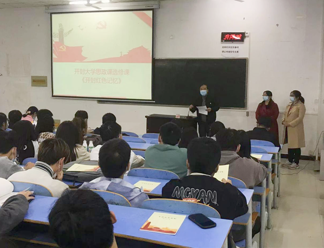 據悉,《開封紅色記憶》選修課以學習“四史”為主線,以開封紅色文化為素材,以13個與開封關系密切的歷史人物和歷史事件為切入點,旨在讓學生更好地了解開封紅色文化的地域特征,更深刻、更全面地掌握了解開封在革命、建設和改革開放過程中的偉大貢獻。