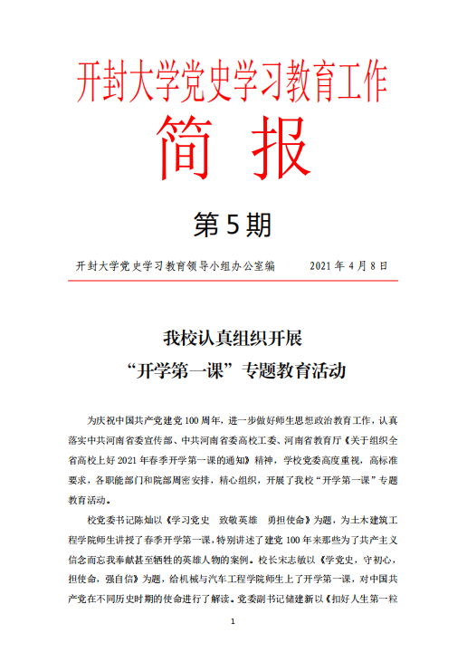 開封大學(xué)黨史學(xué)習(xí)教育工作簡報(第5期)