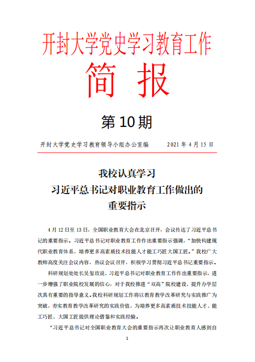 開封大學(xué)黨史學(xué)習(xí)教育工作簡報(第10期)