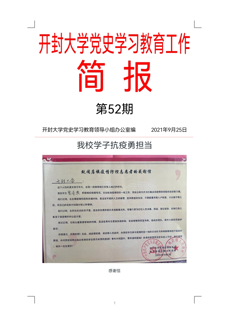 開封大學黨史學習教育工作簡報(第52期)