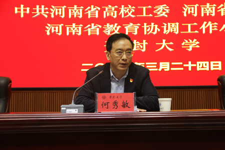 本站訊 為深入貫徹第三次中央新疆工作座談會精神,加強新時代的民族團結進步教育,鑄牢中華民族共同體意識,3月24日至26日,省委高校工委、省教育廳舉辦的河南省少數民族學生思想政治工作干部培訓班在我校舉行。省委高校工委專職委員何秀敏、開封市人民政府副市長劉震、我校黨委書記陳燦出席開班儀式。開封市委常委、統戰部部長邵華,常務副部長呂瑞林出席培訓班專題報告會。省委統戰部、省教育廳、省民宗委、鄭州市教育局、開封市教育局、南陽市教育局相關負責人,部分高校黨委相關部門負責人、教師、學生專職輔導員,共135人參加培訓。