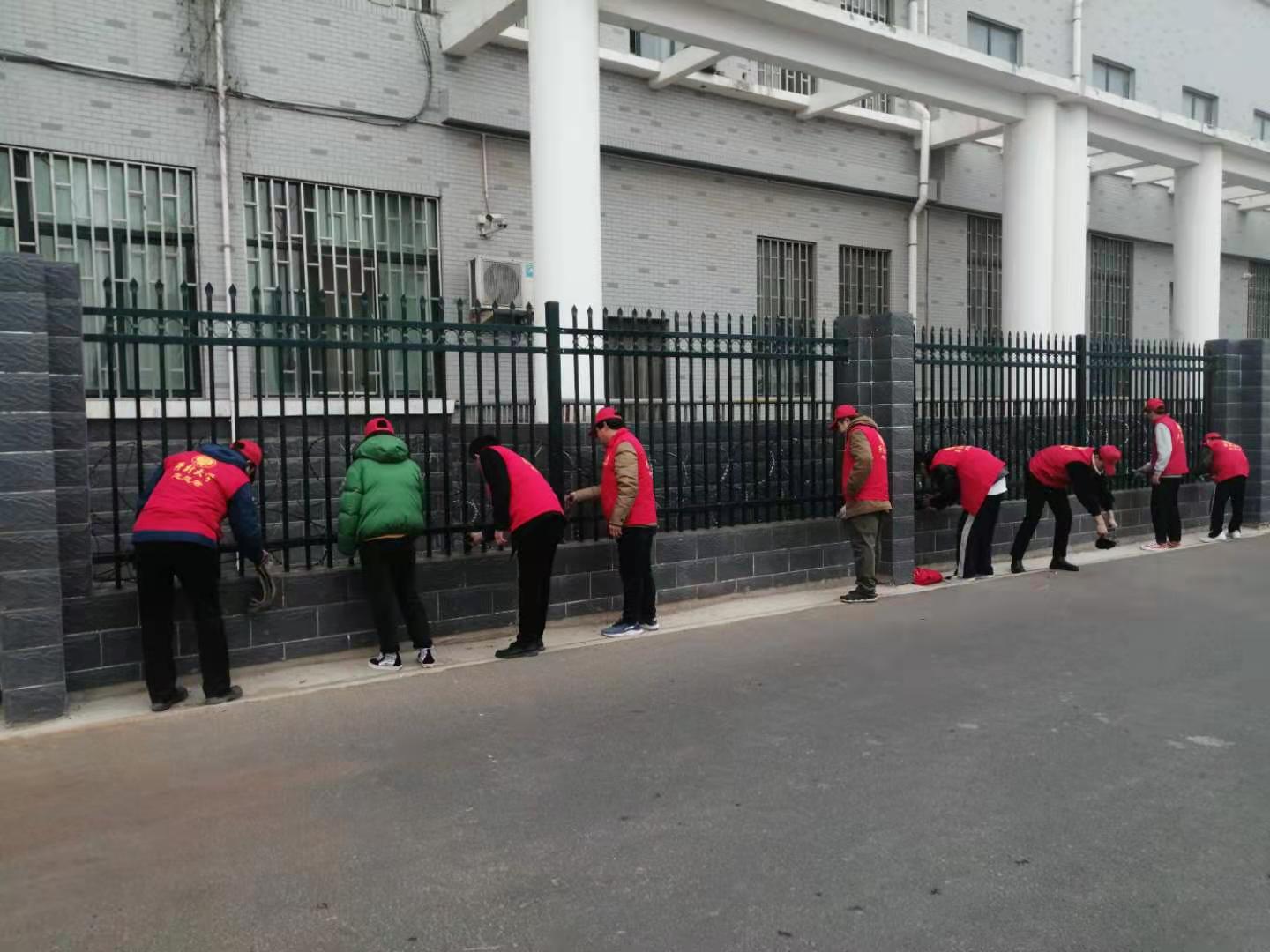 頭戴小紅帽、身穿紅馬夾的60余名師生志愿者熱情投入到校園圍欄的清潔活動中。志愿者擼起袖子、一字排開,熱火朝天地用抹布一條一條地擦拭著校園南門東西兩側的圍欄,共同營造整潔、美麗的校園。經過一個半小時的清潔,校園圍欄變得干凈亮麗,煥然一新。