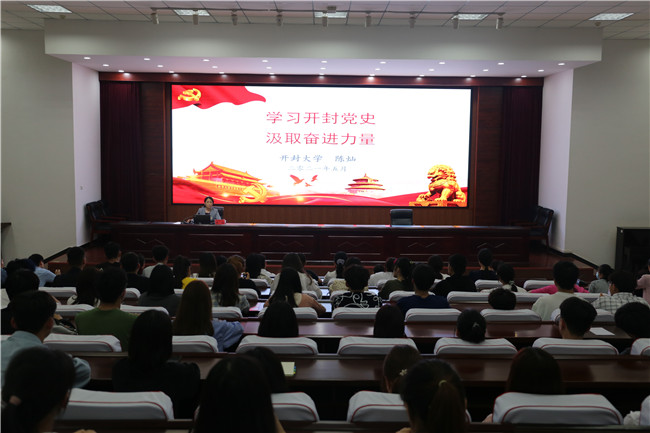 報告會上,陳書記結合開封紅色歷史,從“在回望開封歷史中追尋紅色記憶,砥礪初心使命”“在致敬開封英雄中弘揚紅色精神,凝聚榜樣力量”“在明德勵學中傳承紅色基因,共建出彩開大”三個方面做了專題報告。陳書記以詳細的開封黨史史料和在開封戰斗工作過的革命先烈的故事,帶領大家重溫開封紅色革命的崢嶸歲月,深切體悟了英烈們對革命的堅定信念和舍身忘我的斗爭精神、不怕犧牲的無畏精神,并提出了“辦讓黨放心、讓人民滿意的教育”“做讓黨放心、讓人民滿意的教師”“當讓黨放心、讓人民滿意的青年”的要求。