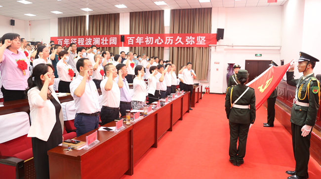 會(huì)議在雄壯激昂的中華人民共和國國歌聲中拉開序幕,全體與會(huì)黨員重溫入黨誓詞。