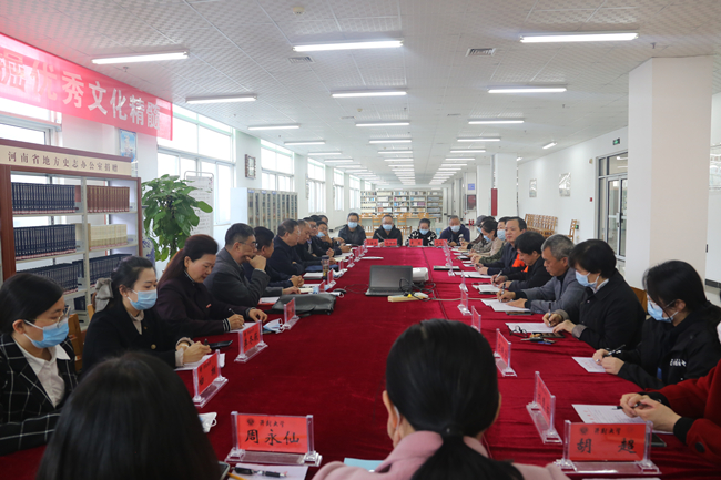 開封市地方史志研究室黨組書記、主任郁正國,通許縣地方史志研究室主任孫兆勝,示范區地方史志研究室主任鄭忠,開封市人大常委會原副主任李兵紀,開封報業集團原總編輯陳劍平與我校三十多位教師參加座談。