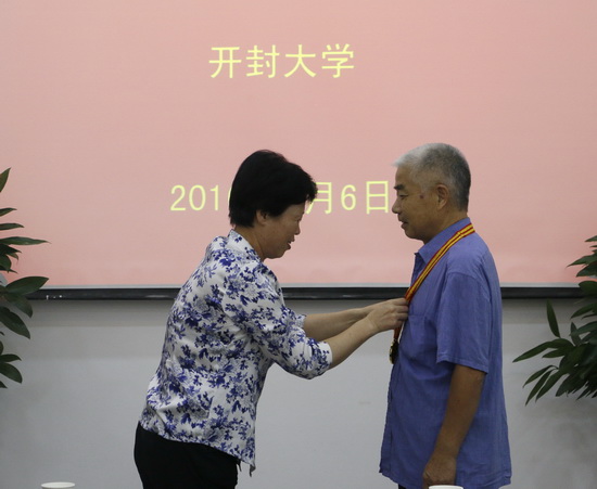 校黨委書記張新梅為老黨員頒發(fā)榮譽紀念章