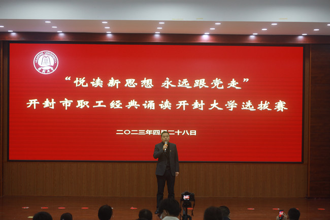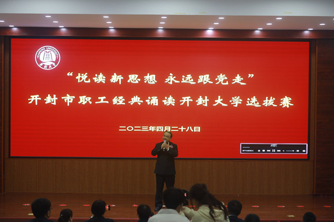 本站訊 為深入學習貫徹習近平新時代中國特色社會主義思想和黨的二十大精神,認真落實中央、省委、市委關于推進全民閱讀、建設書香開封的重要決策部署。4月28日上午,校工會在行政樓第一會議廳舉辦“悅讀新思想 永遠跟黨走”開封市職工經典誦讀活動開封大學選拔賽。校黨委委員、工會主席成芳出席活動。
