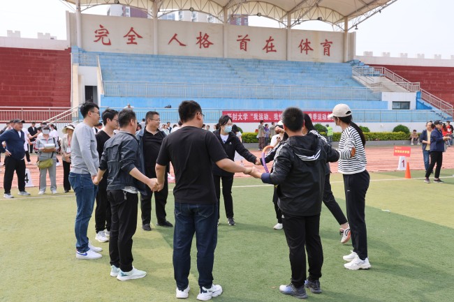 本站訊 為豐富教職工的精神文化生活,強化運動健身意識,4月22日下午,由校工會舉辦的2024年教職工春季運動會團體項目在體育場開賽?;顒釉O置了“五人團體競速”“一圈到底”兩個項目,來自20個多個分工會的300余名教職工參加了比賽。