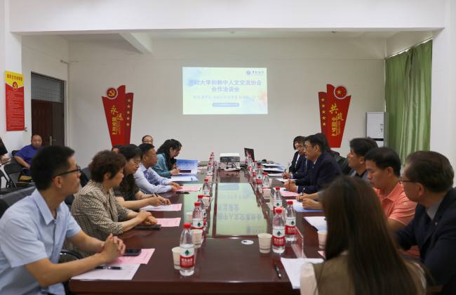 韓中人文交流協會會長、秘書長王天泉代表訪問團對我校的邀請表示感謝,介紹了韓中人文交流協會的發展歷史與成果等情況。雙方就人文交流、師生互訪、人才培養等方面進行了深入的交流和探討,達成多項共識。會談結束后進行了簽約儀式,萬是明與王天泉代表雙方簽署了諒解備忘錄,王德如、焦開舉和趙淑芬出席并見簽。