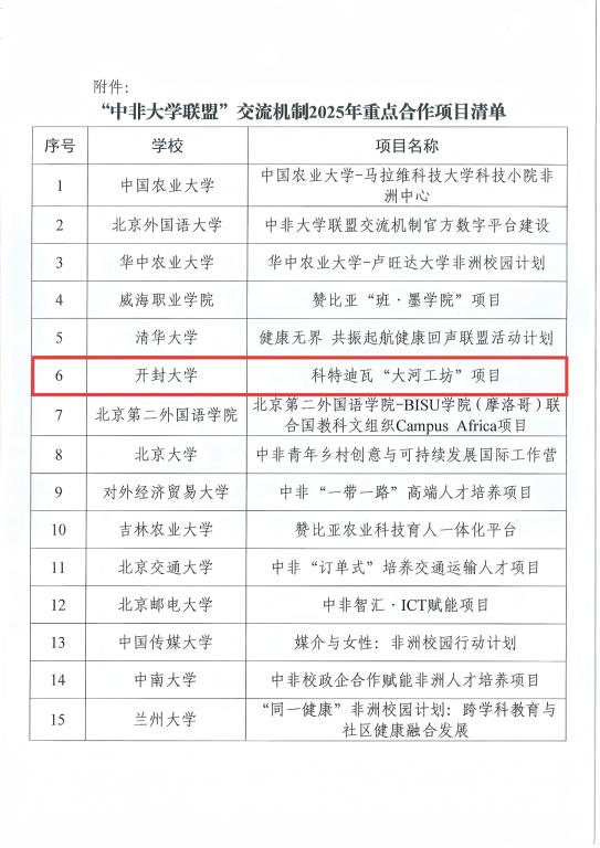 開(kāi)封大學(xué)獲批中國(guó)高等教育學(xué)會(huì)“中非大學(xué)聯(lián)盟”交流機(jī)制2025年重點(diǎn)合作項(xiàng)目