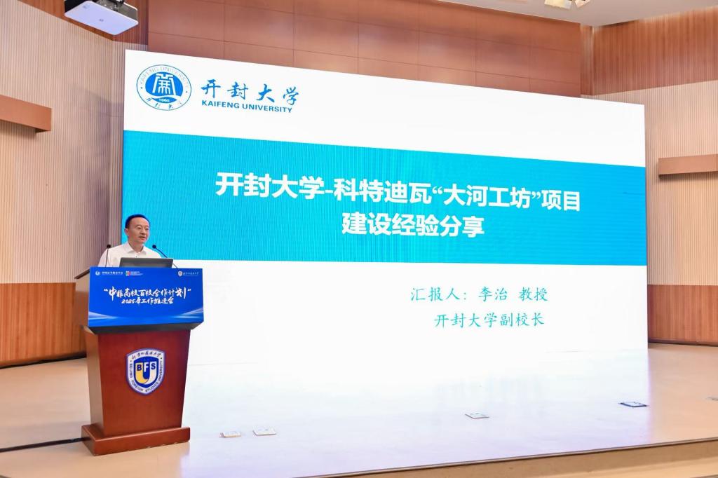 會(huì)上,中國高等教育學(xué)會(huì)正式公布“中非大學(xué)聯(lián)盟”交流機(jī)制2025年重點(diǎn)合作項(xiàng)目名單,開封大學(xué)與科特迪瓦合作的“大河工坊”項(xiàng)目成功入選。副校長李治在會(huì)上作經(jīng)驗(yàn)分享,他詳細(xì)介紹了學(xué)校的基本情況與國際化辦學(xué)成果,重點(diǎn)闡述了“大河工坊”項(xiàng)目在中非文化交流、教育合作及培養(yǎng)國際化人才等方面取得的顯著成效。針對(duì)未來發(fā)展,李治表示,學(xué)校將從強(qiáng)化師資隊(duì)伍建設(shè)、深化教學(xué)資源共享、推進(jìn)科研合作等方向發(fā)力,通過開展產(chǎn)學(xué)研合作、教師培訓(xùn)交流項(xiàng)目、共建共享優(yōu)質(zhì)課程資源、聯(lián)合申報(bào)科研課題等方式,推動(dòng)項(xiàng)目提質(zhì)升級(jí),拓展合作的廣度與深度。
