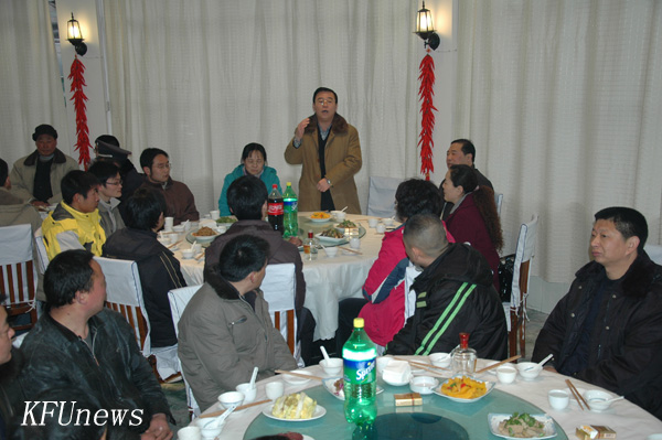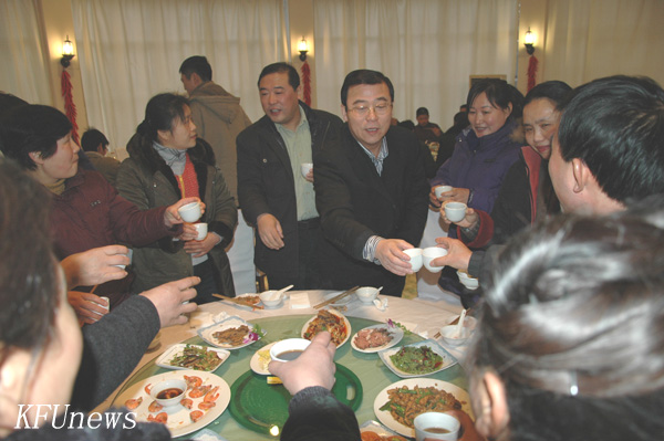 本站訊 2月13日傍晚,校長拜五四,黨委副書記、副校長儲建新和相關(guān)處室負(fù)責(zé)人與寒假期間留校的教職員工及學(xué)生在教職工餐廳共同慶祝新春佳節(jié)的來臨。