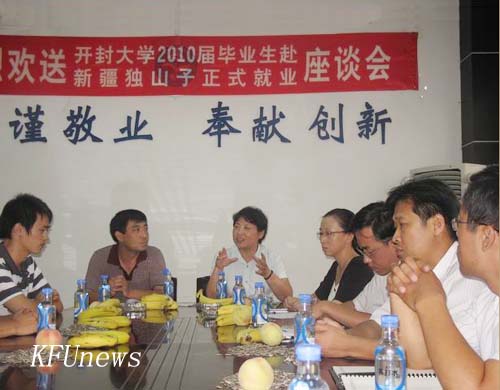 秦部長在座談會作了發言。她說,這次中國最大的石化企業中國石油獨山子公司能錄用我校畢業生,是對開封大學化工學院教學質量和人才教育水平的認可,說明化工學院是一個有朝氣有實力的團隊。秦部長勉勵即將赴疆工作的學生,好男兒志在四方,面對祖國西部大開發的良好機遇,應該做一個長期發展規劃,把自己的事業做扎實,做出成績,并希望做一個政治清醒、立場堅定、人格完善、身體健康的人。