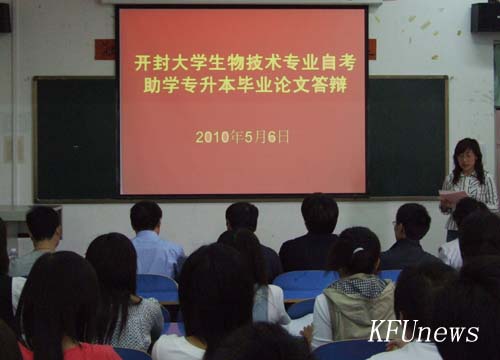 化學工程學院生化教研室主任韓艷霞擔任本次答辯委員會主任,她首先代表學院對出席本次答辯會的各位領導和專家表示熱烈歡迎,并詳細說明了本次自考助學專升本答辯時間安排、學生分組、評分標準及答辯注意事項等。參加當天答辯的2008級四位專升本同學準備充分,思路敏捷,專業知識扎實。她們首先對自己所作的本科論文進行了15分鐘的陳述,之后就答辯老師所提的問題作了一一回答。答辯會后,孟喜樂教授對我校參加論文答辯的同學們的表現給予了很高的評價,并鼓勵他們本科畢業后刻苦專研,繼續努力提升學歷層次,。