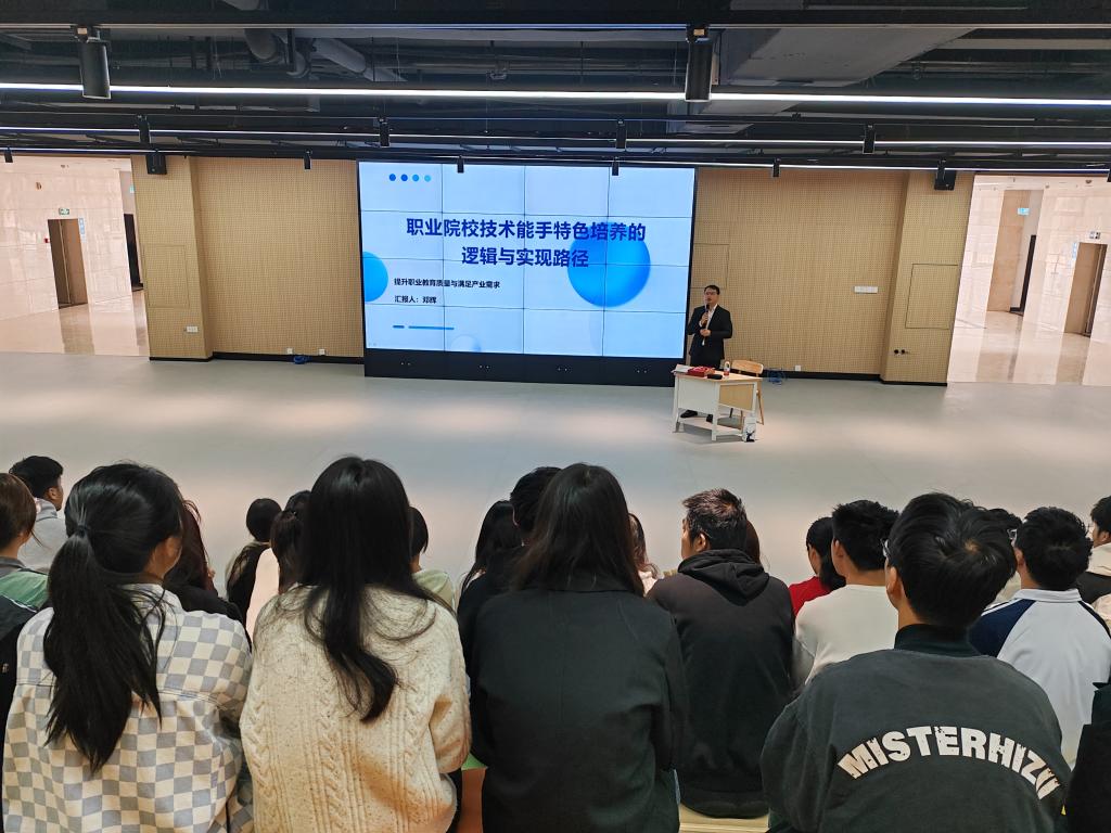 報告會上,鄧輝結合自身成長經歷,從技術能手培養與產業需求的契合、人才成長的邏輯、教育創新、課程體系建設、師資隊伍優化、產教深度融合、技能大賽和創新創業活動、評價體系建設七個方面闡述了職業院校如何促進技術能手的培養,并與現場師生進行互動交流。會后,鄧輝與我校創新創業學院99℃創客空間師生團隊進行了深入交流。