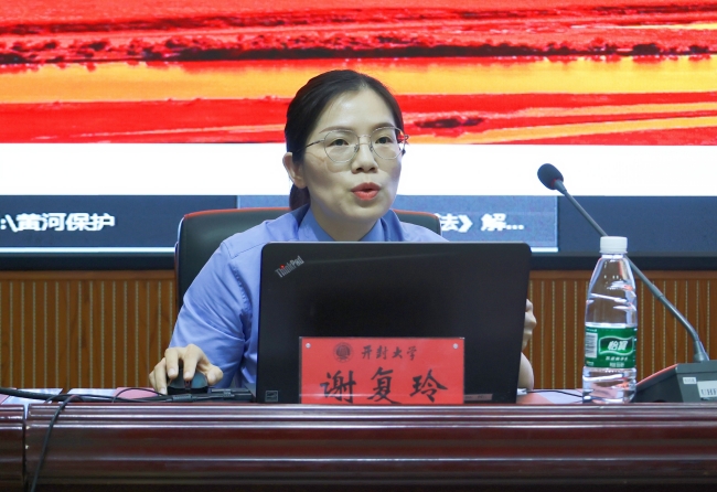 講座中,謝復(fù)玲對檢察機(jī)關(guān)公益訴訟職能進(jìn)行了介紹,圍繞《黃河保護(hù)法》出臺的背景,深入淺出地解讀了《黃河保護(hù)法》的主要亮點(diǎn),講解了有關(guān)黃河保護(hù)的典型案件和近年來開封市檢察機(jī)關(guān)關(guān)于黃河保護(hù)開展的工作。