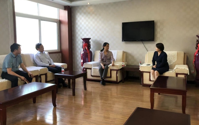 報告前,校黨委書記陳燦、校長宋曉煒、副校長萬是明在一樓接待室與張祎捷教授進行座談。