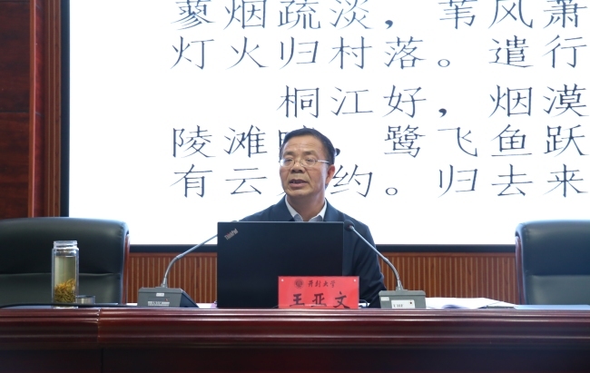 報告前,校黨委書記陳燦等校領(lǐng)導(dǎo)在三樓會議室與王亞文進行座談。