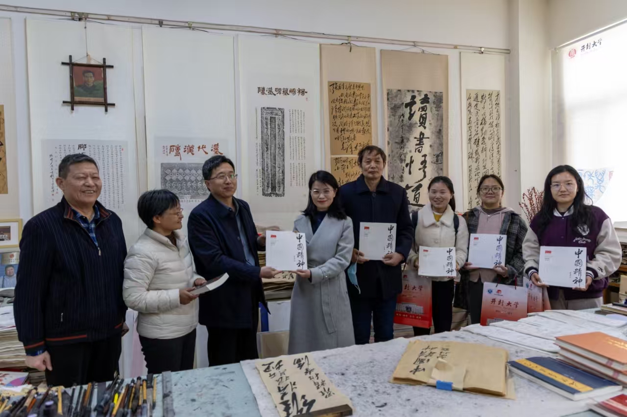本站訊 3月13日,開(kāi)封市委黨校馬列教研室主任劉善花、副主任王景盼等一行,前往開(kāi)封大學(xué)書(shū)畫(huà)協(xié)會(huì)文化走廊及毛成利書(shū)法創(chuàng)新工作室開(kāi)展參觀交流活動(dòng)。