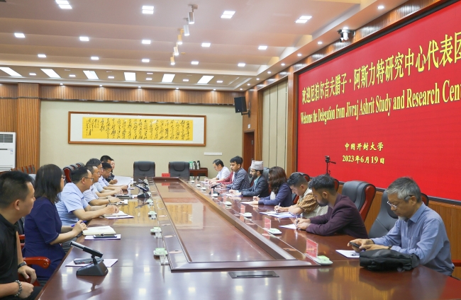 本站訊 6月19日上午,尼泊爾吉夫臘子·阿斯力特研究中心代表團(tuán)訪問我校,校領(lǐng)導(dǎo)宋曉煒、萬是明、李治在第二會議廳會見了來賓,科研外事處、外國語學(xué)院、國際教育學(xué)院負(fù)責(zé)人參加會議。會議由副校長萬是明主持。