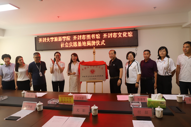 最后,雙方領導共同為“開封大學旅游學院·開封市圖書館、開封市文化館社會實踐基地”揭牌。
