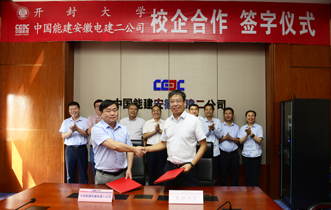 校長宋曉煒與安徽電建二公司黨委副書記總經(jīng)理陳建明代表雙方簽訂校企合作協(xié)議