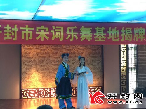 伴隨著古色古香的音樂和眾多的嘉賓們的掌聲,成芳、陳巖、趙瑾共同為開封宋詞樂舞研究會基地開封大學揭牌。