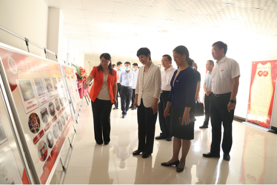 馬克思主義學院院長常素芳教授為與會領導介紹馬克思主義學院展示牌