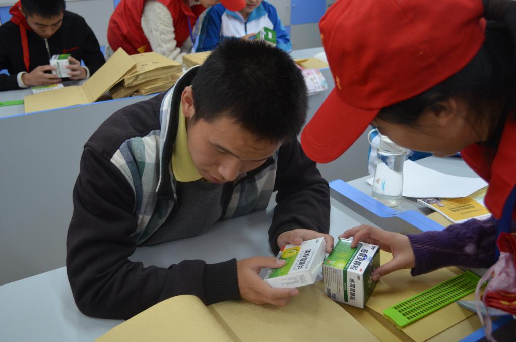 醫(yī)學(xué)部藥品盲識(shí)團(tuán)隊(duì)成員專門為這些盲生用的藥品制作了藥品盲文標(biāo)簽貼在藥盒上,可以方便這些盲生能方便識(shí)別藥品、安全用藥。農(nóng)工黨開封大學(xué)總支老師們又針對(duì)不同年級(jí)的盲生,根據(jù)用藥特點(diǎn)為他們進(jìn)行用藥指導(dǎo)服務(wù)。