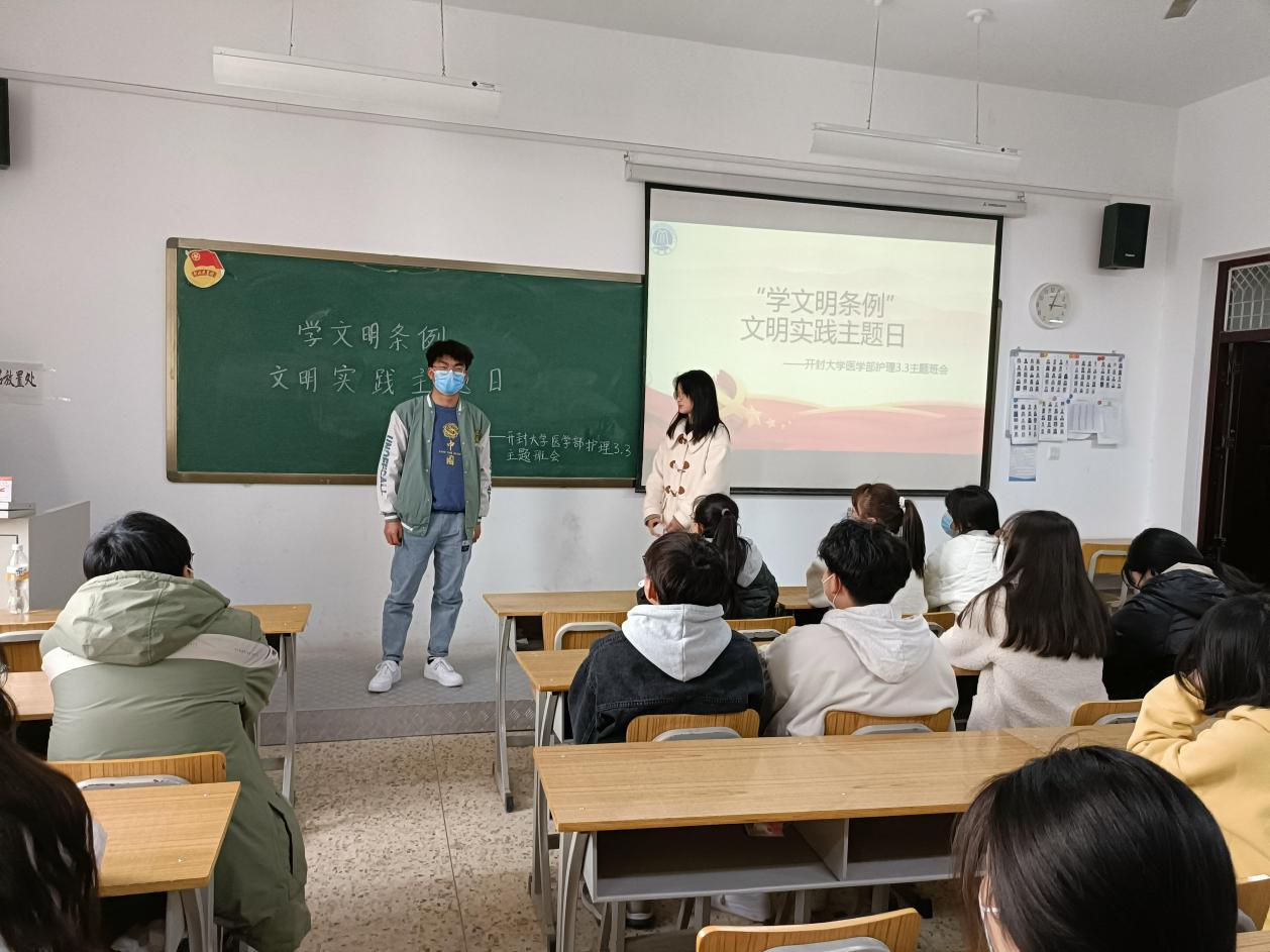 3月1日,醫學部21級護理專業開展了“學文明條例”文明實踐主題日活動。各班精心組織召開了主題班會,節選《條例》中有關文明學生、文明校園的內容進行重點學習,著重組織學生學習了《條例》第二章《規范和倡導》。讓每位學生了解《條例》規定的各項條款,以便更好地規范學生的文明行為,爭當文明好市民。